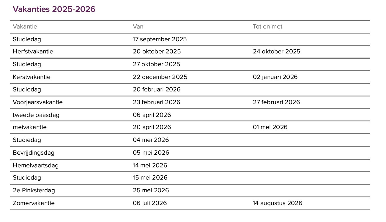 Vakanties en vrije dagen