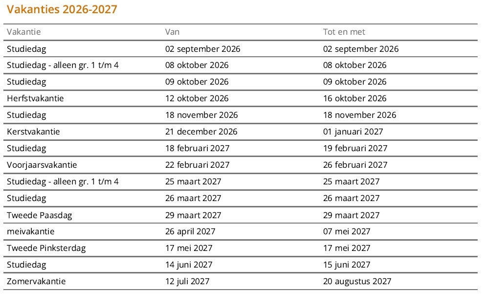 Vakanties en vrije dagen